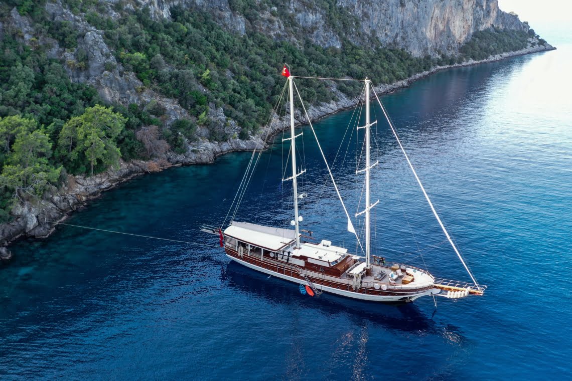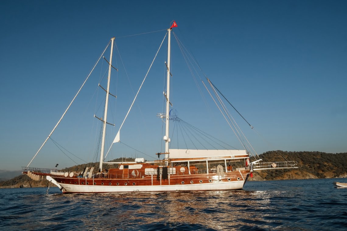 أ: The most popular route for a vessel this size is the “12 Islands of Göcek” circuit. This allows the captain to find spacious anchorages suitable for a 34-meter hull, providing guests with calm waters for water sports and short cruising distances between breathtaking bays like Sarsala or Bedri Rahmi.