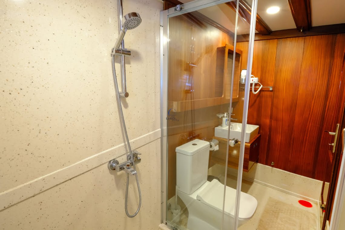 Designed specifically for استئجار يخت خاص, the Ada Deniz eliminates the “small cabin” stereotype. Each of the 8 cabins—comprising 6 doubles and 2 twins—is a private sanctuary equipped with individual air conditioning, home-style toilets, and sleek shower units. Whether you are hosting a milestone birthday or a corporate retreat, the vessel’s layout ensures everyone enjoys equal comfort.