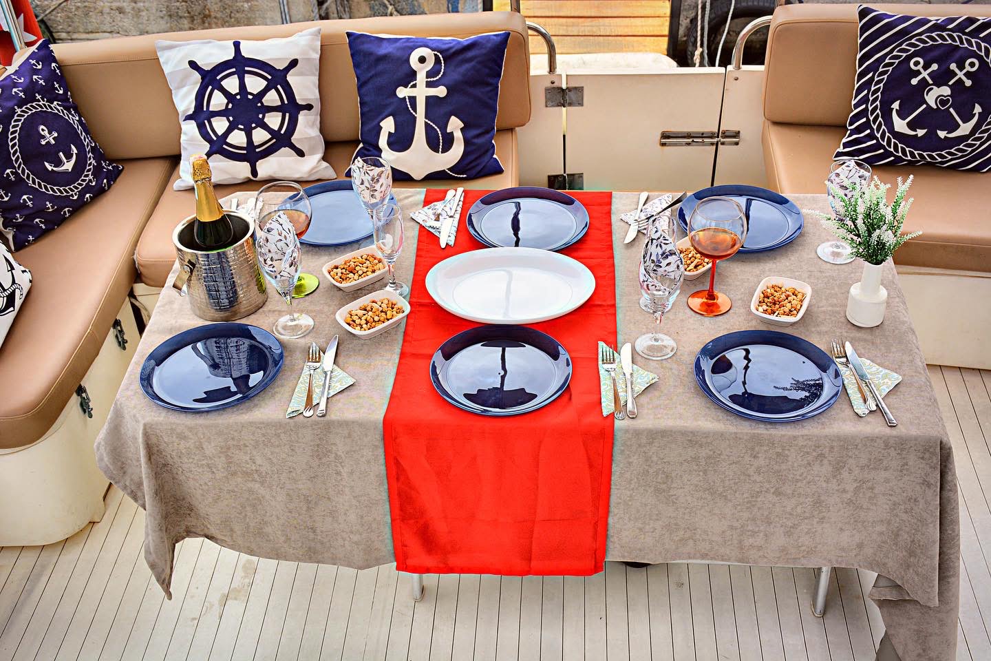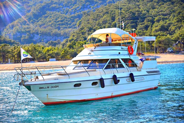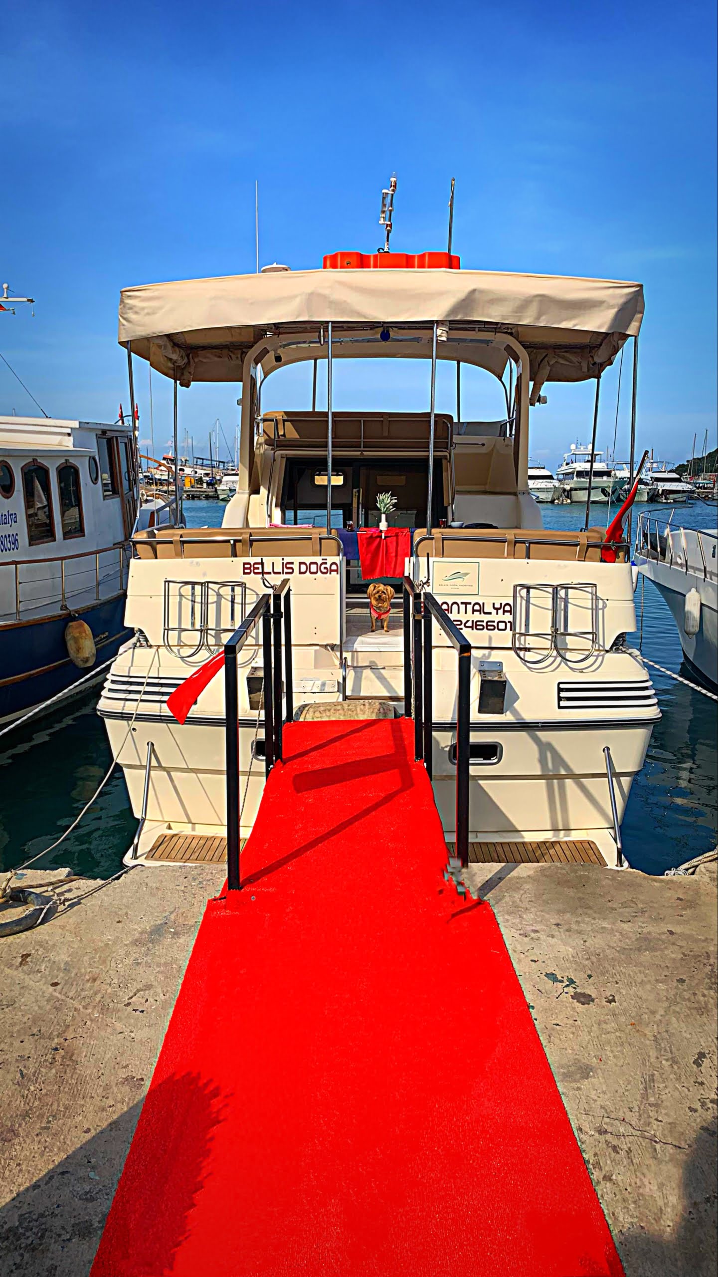 14 m Motoryacht. 3 Besatzungsmitglieder (1 Kapitän, 1 Deckjunge, 1 Koch)