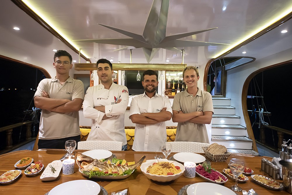 Eine vierköpfige Crew, darunter ein erfahrener Kapitän und ein talentierter Koch, sorgt dafür, dass jeder Moment reibungslos und unvergesslich verläuft.