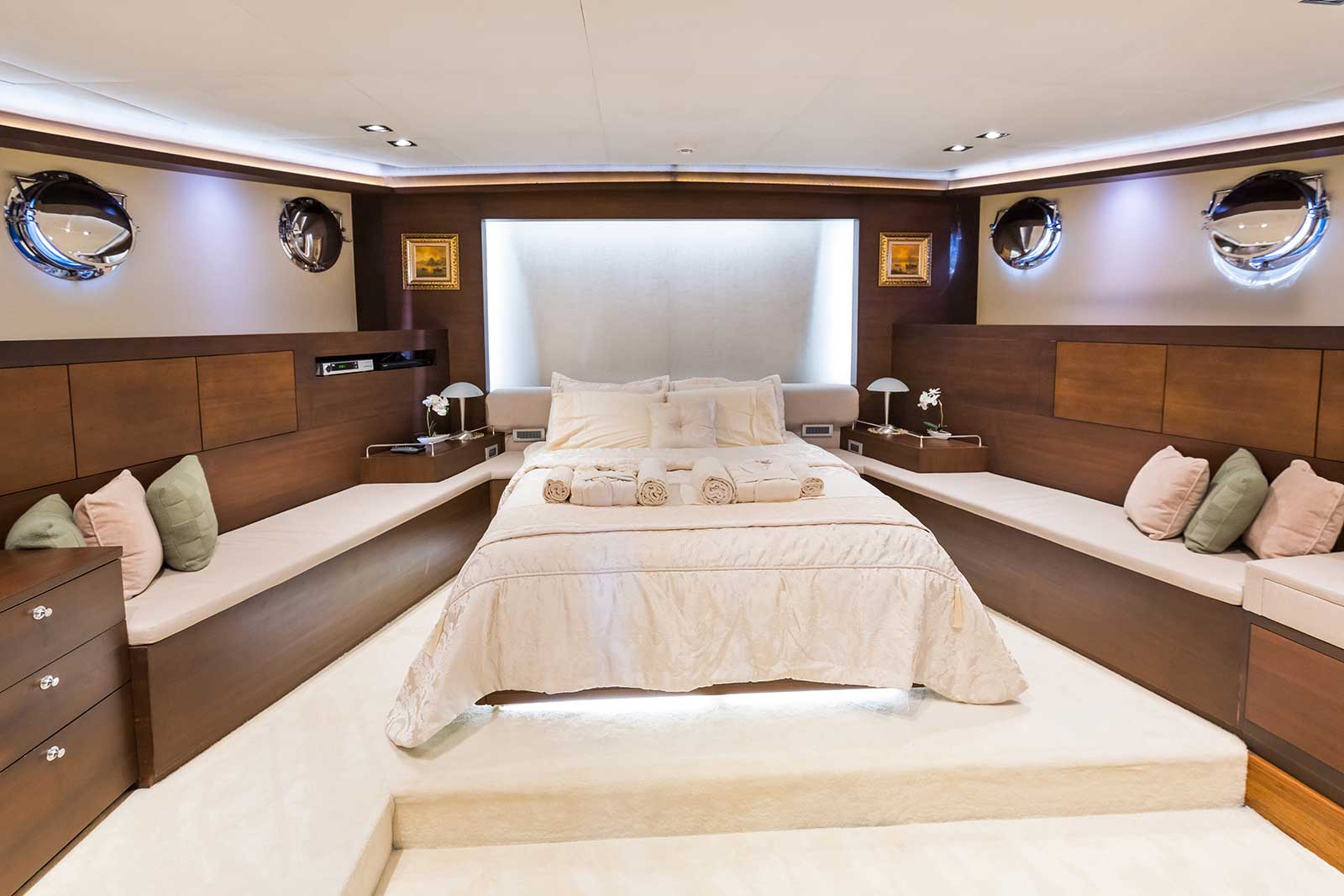Ihr Ultra-Luxus-Yachterlebnis wird durch eine engagierte 7-köpfige Besatzung, darunter ein Kapitän, ein Koch, 3 Decksleute, eine Gastgeberin, und ein Kabinensteward. Unser erfahrenes Team achtet sehr auf die Privatsphäre unserer Gäste und geht auf alle Ihre Bedürfnisse ein, um eine diskrete und komfortable Reise zu gewährleisten.