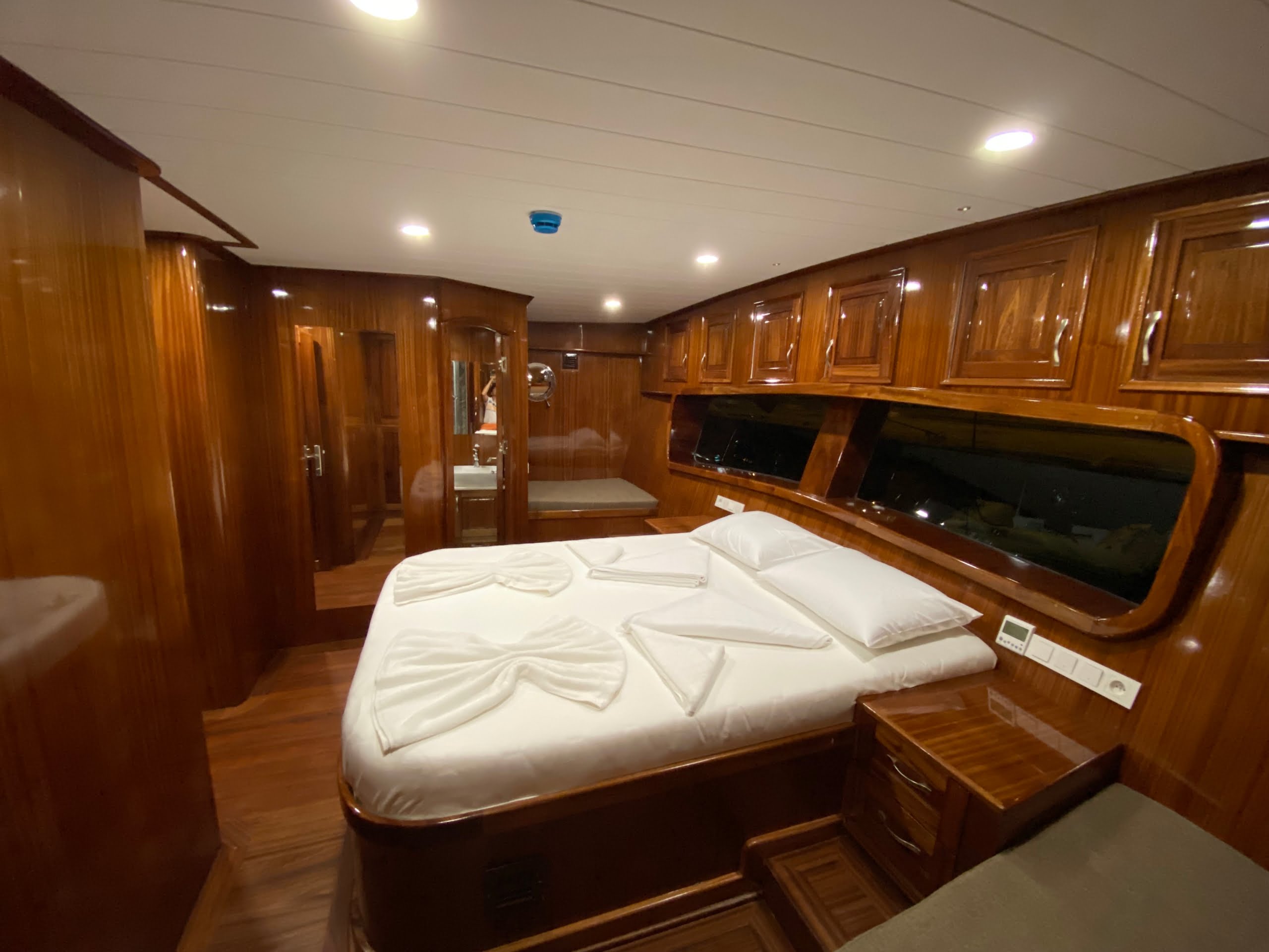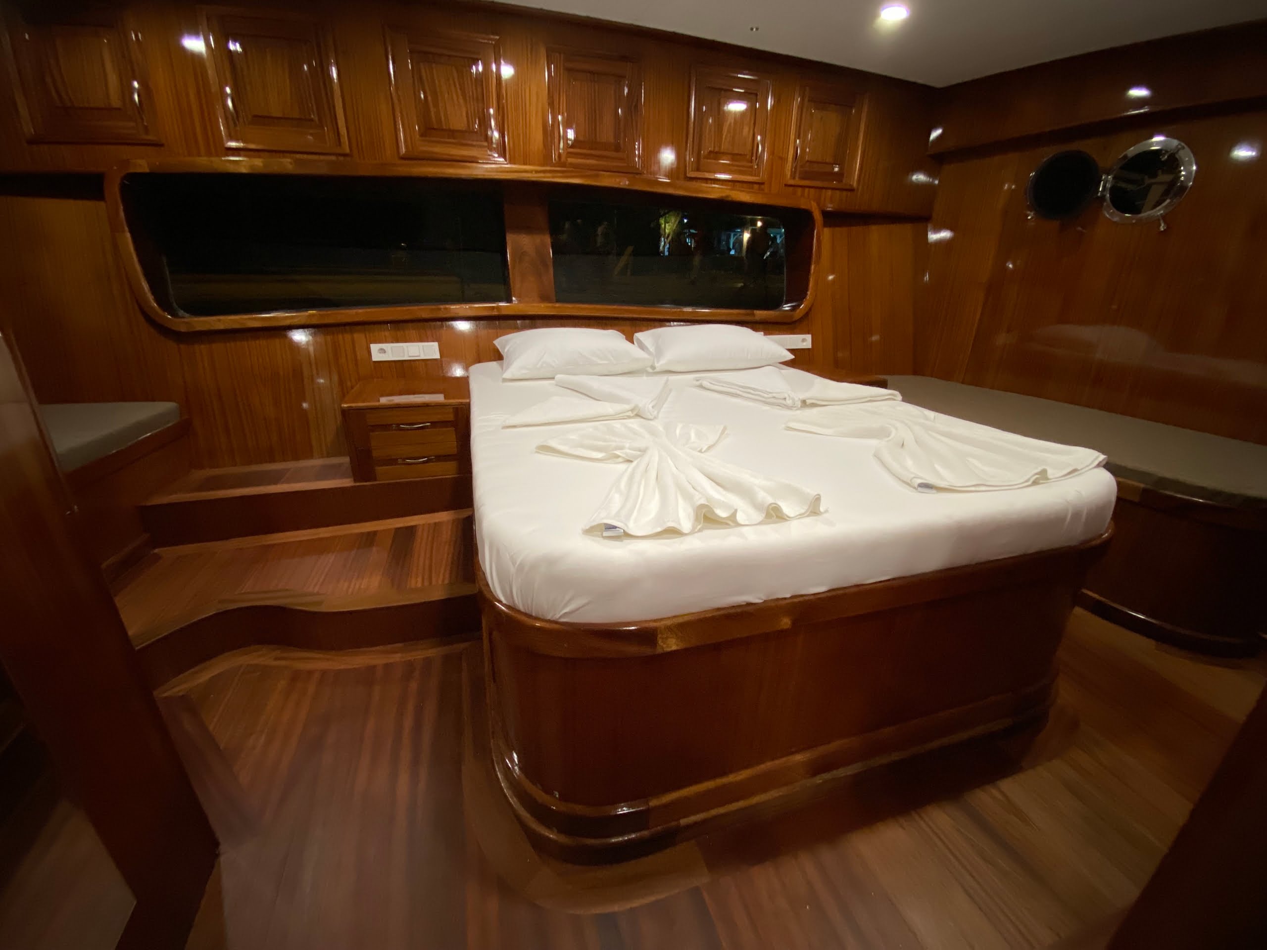 Unser Gulet ist vollständig aus hochwertigem Holz gefertigt und ist verziert mit einzigartiges Design und handgefertigte Details zur Ergänzung Ihres Urlaub in der Türkei. Mit unserer erfahrene und professionelle Crew Von drei Personen aus können wir auf unserem 26 Meter langen Boot Gruppen von bis zu zehn Personen in zwei komfortablen Master- und vier Doppelkabinen unterbringen.