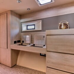 Kommen Sie an Bord der Leopard 40 um Luxus und Freizeit zu erleben. Mit drei stilvoll eingerichteten Kabinen bietet dieser Katamaran bequem Platz für bis zu sechs Personen und eignet sich daher für Familien, Paare oder kleine Gruppen von Freunden. Jede Kabine verfügt über viel Stauraum, weiche Betten und Panoramafenster, die einen atemberaubenden Blick auf die umliegende Landschaft bieten.