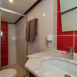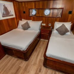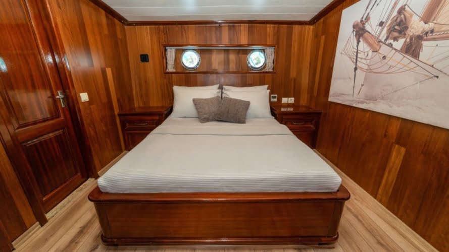 Ingrese a un mundo de lujo al ingresar a una de las 9 cabinas meticulosamente diseñadas a bordo del Albatros D Gulet. Cada cabaña es un santuario de comodidad y elegancia, con ropa de cama lujosa, decoración elegante y baño privado. Con 7 cabinas dobles y 2 cabinas dobles, hay un amplio espacio para que los huéspedes se relajen y descansen, lo que garantiza un sueño reparador después de un día de aventuras.
