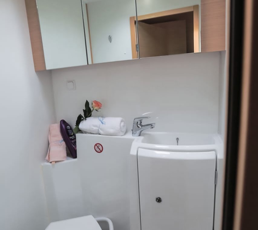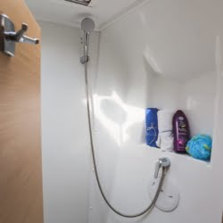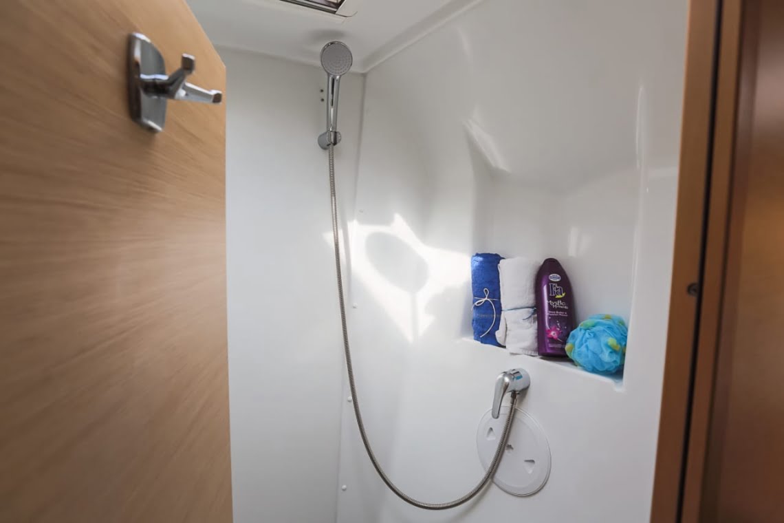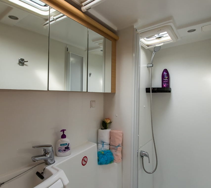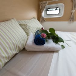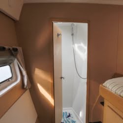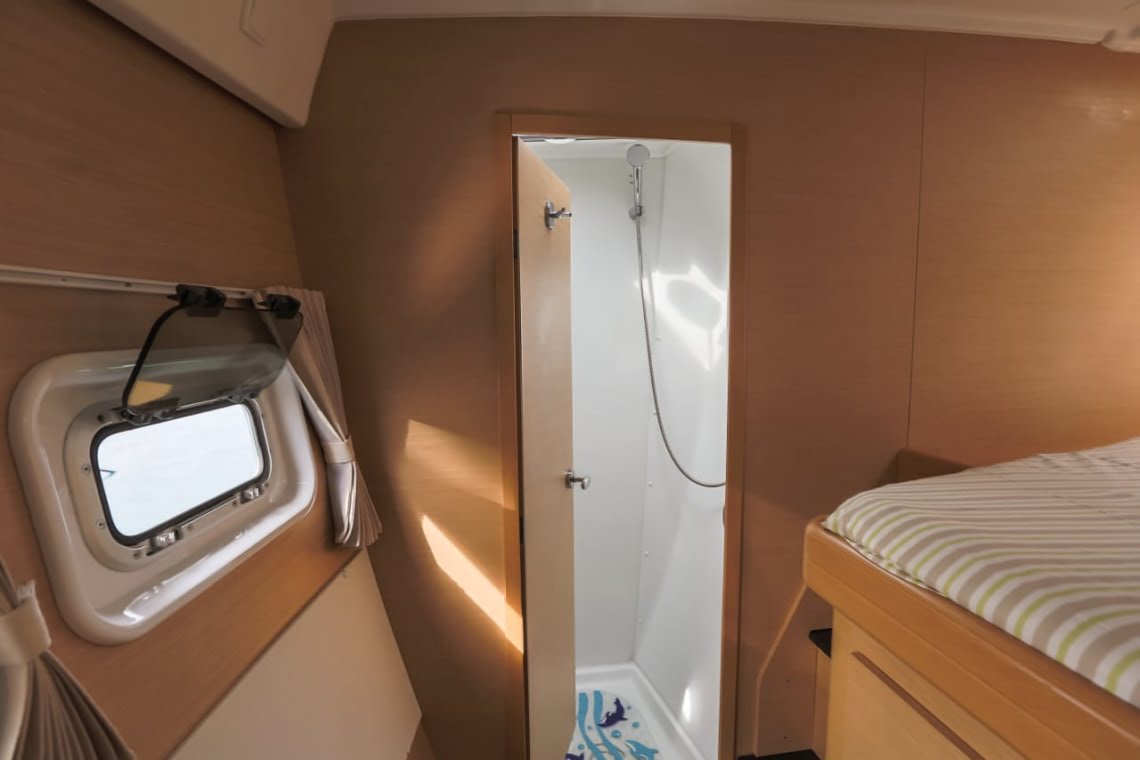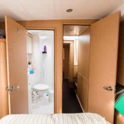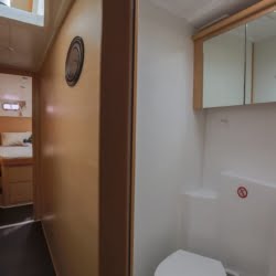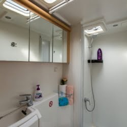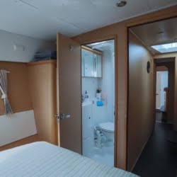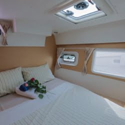 Four double cabins have en suite bathrooms plus a separate skipper cabin and bathroom.