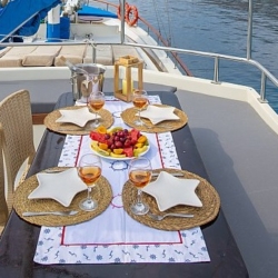 La gastronomía a bordo es un punto culminante, con deliciosos platos frescos preparados a diario. La cocina totalmente equipada del yate incluye una máquina de café expreso, una exprimidora de jugos naturales y una máquina de hielo, para que pueda disfrutar de sus bebidas favoritas en alta mar.