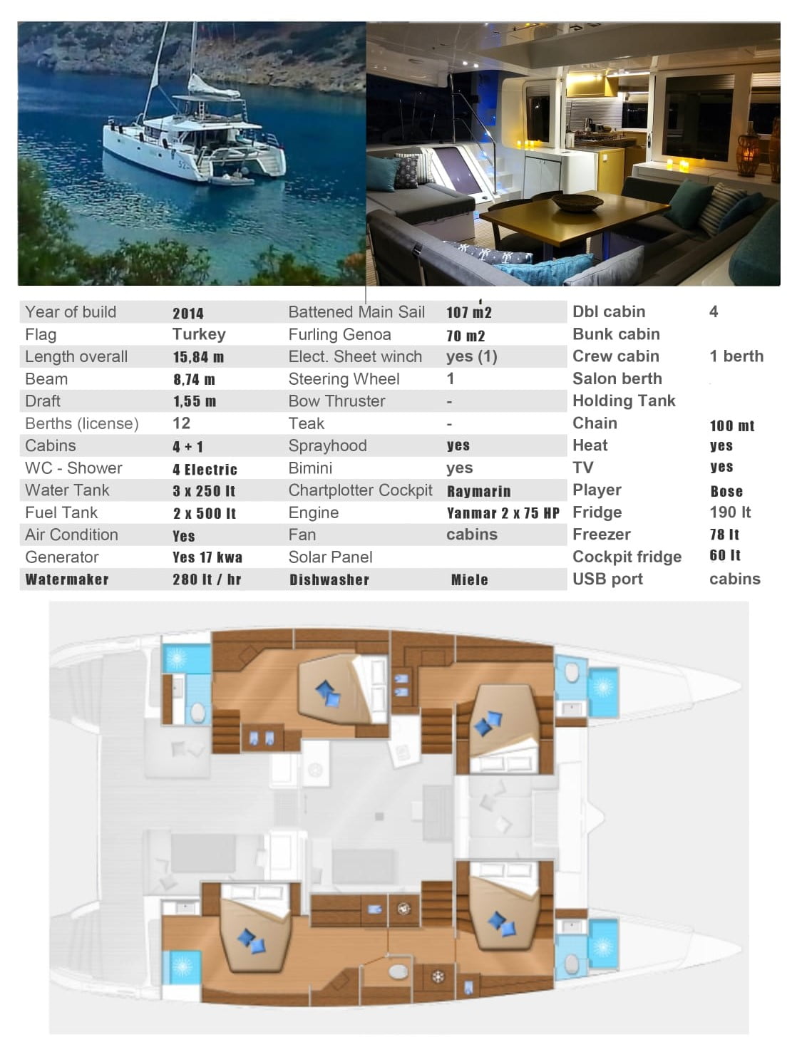 - Yacht Type: Bareboat Rental, Private Yacht Charter, With Captain / Catamaran