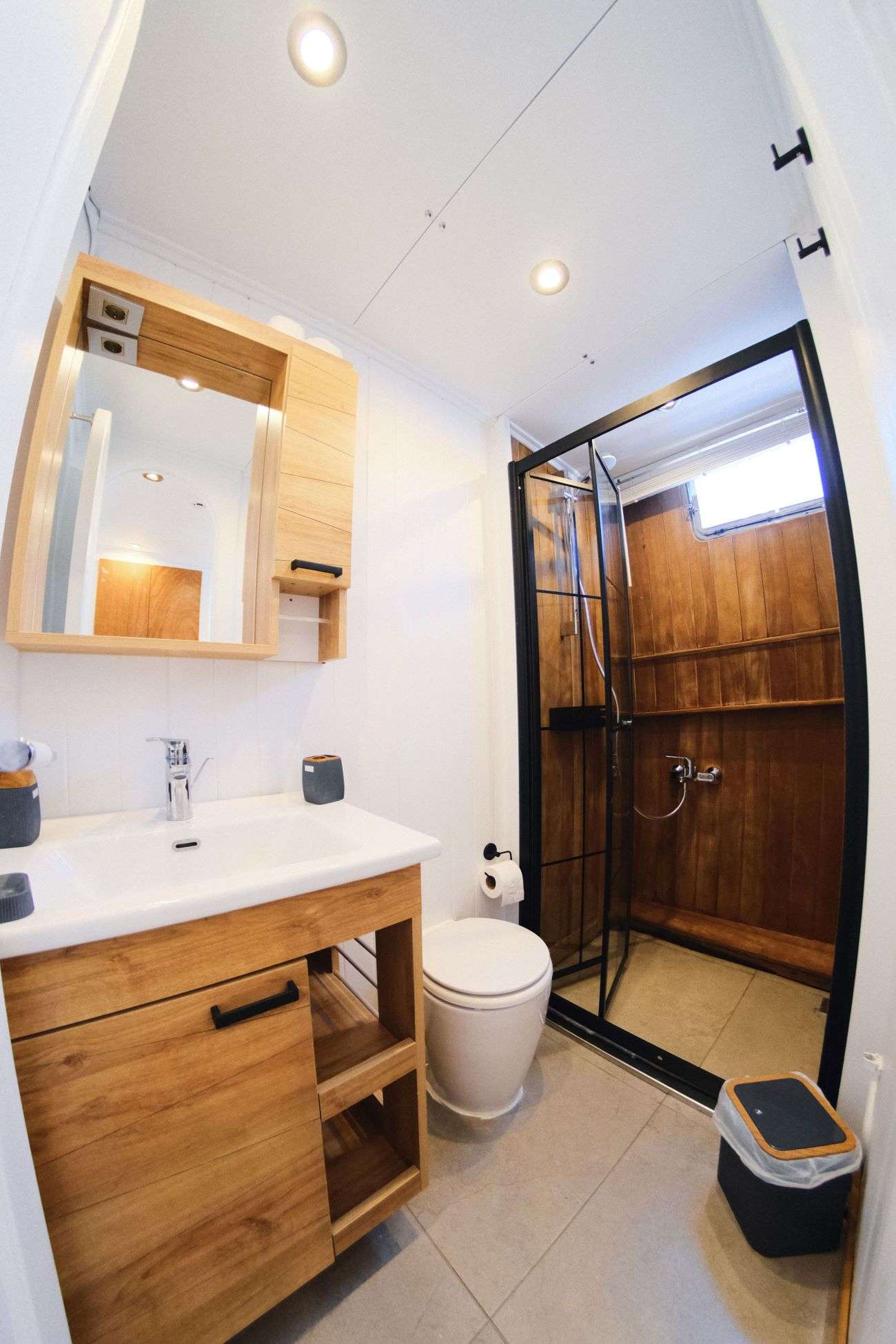 כשאתם נכנסים ל-Escape Gulet, תקבלו את פניכם בשילוב של יוקרה ונוחות, תוך כדי שייט במימי הים התיכון. הסירה כוללת שני בקתות הורים וארבעה בקתות זוגיות, שכל אחת מהן מעוצבת בצורה מהורהרת להרגעה ולהנאתכם. בכל בקתה יש מקלחת, שירותים ומיזוג אוויר כדי להבטיח את הנוחות שלך בתוך הכחול השליו של הים.