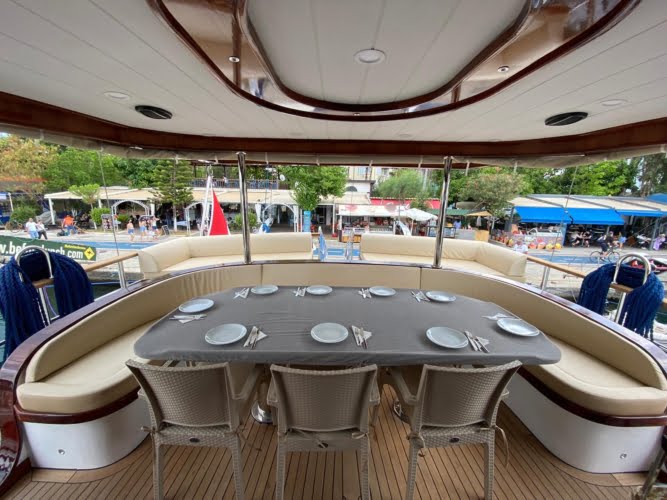 שֶׁלָנוּ גולט עשוי כולו מעץ איכותי ומקושט ב עיצוב ייחודי ופרטים בעבודת יד כדי להשלים את שלך חופשה בטורקיה. עם שלנו צוות מנוסה ומקצועי של שלושה אנשים, נוכל לארח קבוצות של עד עשרה אנשים בסירה באורך 26 מטר שלנו, 2 מאסטר נוח ו-4 תאים זוגיים.