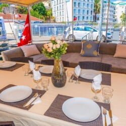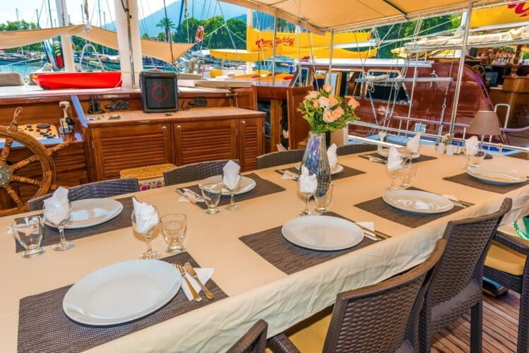 תוכלו ליהנות גם ממטבח טורקי טעים במהלך השייט הכחול. מנות מקומיות ופירות ים טריים שהוכנו על ידי שפים מומחים מוגשים על גולט. המטבח הטורקי מפורסם בעולם בשל מגוון עשיר וטעמיו הייחודיים. ארוחת ערב רומנטית על שפת הים היא בין הזכרונות הבלתי נשכחים של חווית השייט הכחול.