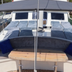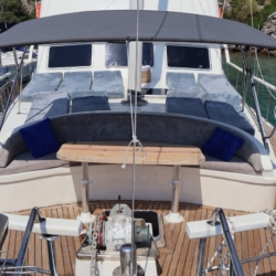 A: Apsolutno. Visoke ograde, čvrsta konstrukcija trupa i pažljiva posada čine ga sigurnom i ugodnom opcijom za obitelji. Raspored s četiri kabine omogućuje roditeljima i djeci da imaju vlastite privatne prostore dok dijele zajedničke palube.