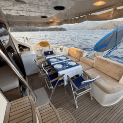 Prava čarolija Luna 34 događa se na palubi. Prostrana Flybridge je društveno srce plovila, nudi sekundarni kormilo za kapetana i udobna sjedišta za goste koji uživaju u koktelima pri zalasku sunca. Bilo da sidrite u osamljenoj uvali u Marmaris Bilo da plivate ili uživate u ručku koji je pripremio chef na stražnjoj palubi, svaki je trenutak prilagođen vašem ritmu. Ovo je više od najma; to je vrata u elitni stil života na jahti, koju podržava profesionalna posada posvećena otkrivanju skrivenih dragulja Egeja.