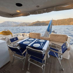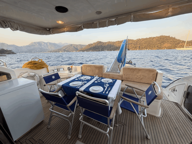 P: Mogu li rezervirati Luna 34 za dnevni izlet u Marmarisu? A: Iako je prvenstveno dizajnirana za tjedne najmove, Luna 34 je dostupna za Dnevni najam ovisno o sezoni i dostupnosti. To je savršen izbor za istraživanje otoka u blizini Marmarisa ili Gocek-a u jednom danu.