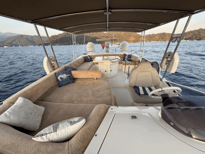 Iznajmite Luna 34, vrhunsku Azimut 47 motor-jahtu za čarter u Gocek i Marmaris. Luksuzni raspored s tri kabine, stručna posada i vrhunske performanse za 6 gostiju.