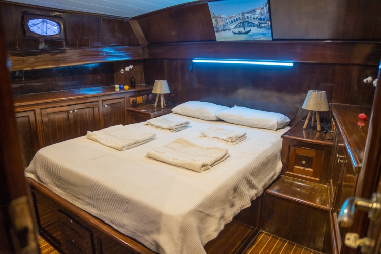 Noleggio caicco Boğaç Kaptan a Gocek, Fethiye: il nostro caicco dispone di 2 cabine ospiti, 1 cabina matrimoniale e 1 cabina armatoriale per 4 persone. La cabina dell'equipaggio, la doccia e il lavandino sono separati.