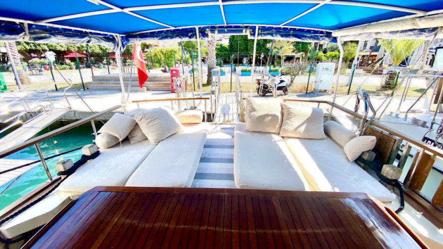 Active 2 è uno yacht a motore a 2 cabine che può ospitare fino a 4 ospiti per fantastici charter in barca nel Mediterraneo orientale, specializzato in Fethiye, Göcek.