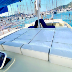 Puoi rilassarti nel tuo lusso yacht a noleggio con le sue caratteristiche come il relax sul ponte e le aree pranzo all'aperto e ammira la tua affascinante crociera nel Mediterraneo. Se vuoi rilassarti sul flybridge, goderti il vento, ammirare le meraviglie naturali e le acque turchesi, incontrare diversi ecosistemi in diverse baie, prendere il sole a prua o sfruttare al massimo i giochi acquatici sulla barca, ce n'è per tutti i gusti!