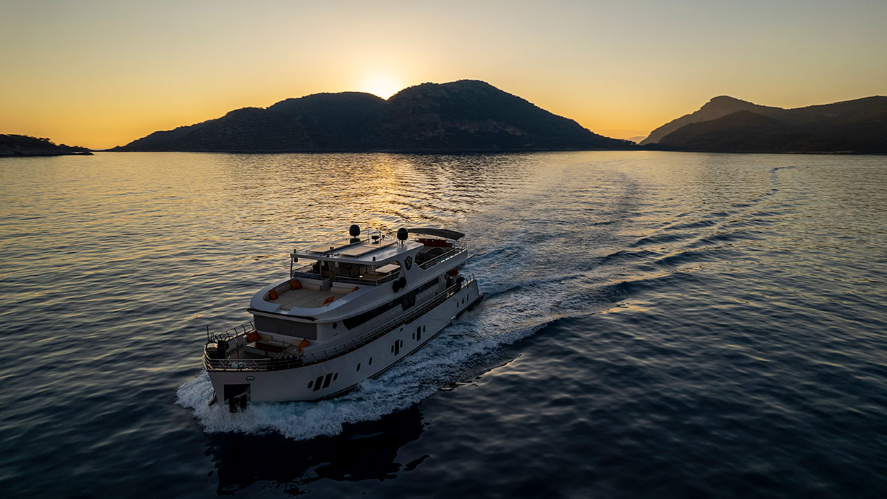 Simay S: 5 Cabines 10 Pax Luxury Trawler Motor Yacht Charter Turkey Fethiye Em destaque