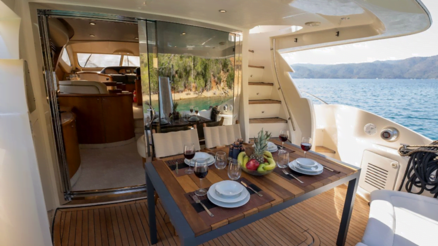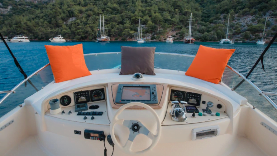 Aicon Fly 56 is a 3 cabin motor yacht that can accommodate up to 6 guests for amazing yacht charters around the Eastern Mediterranean around, specializing in Fethiye, Göcek, and Marmaris.