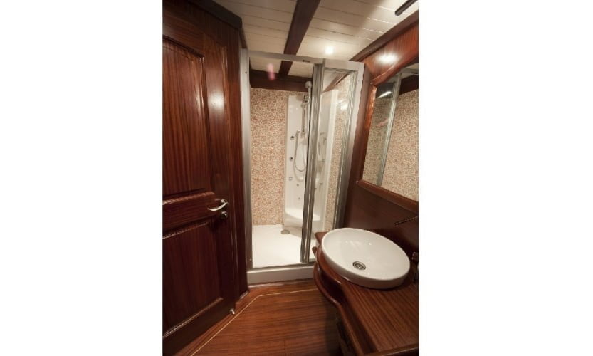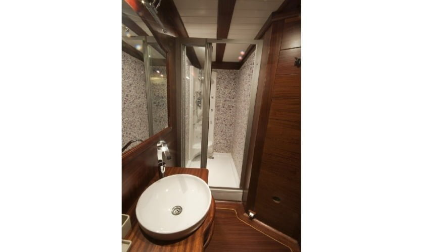 - Water equipment and toys – Stand Up Paddle Board, Water Ski, Wakeboard, Ringo, Canoe, Snorkelling Equipments, Fishing Equipments, Sun mattresses, Sun sail for shade in front of the gulet, Leisure area on the backside of the deck coming, Deck shower.