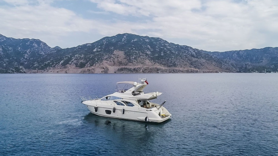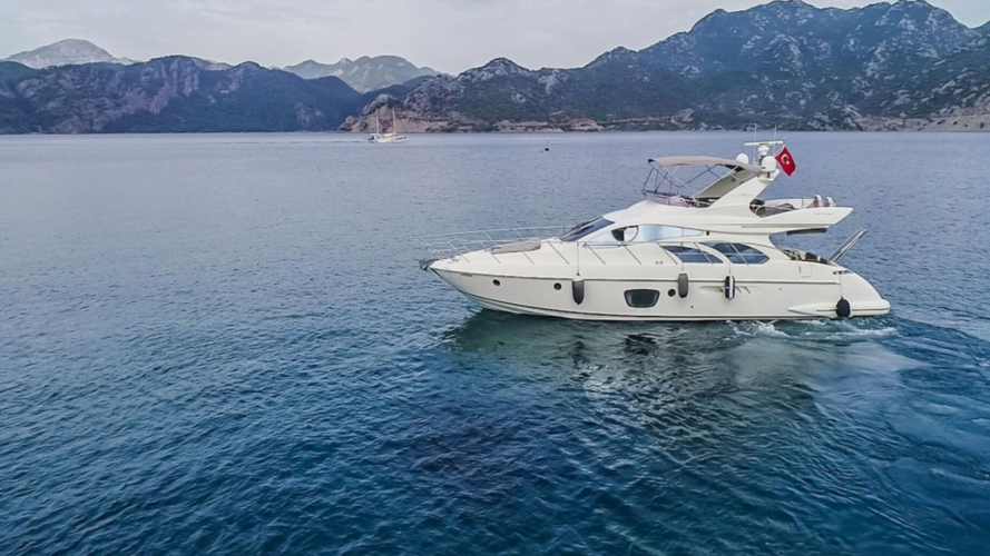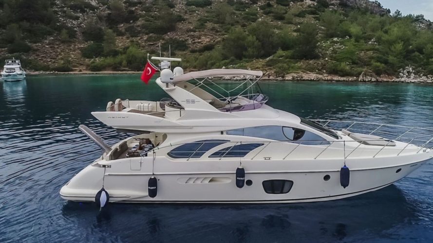 Azimut 55 is a 3 cabin luxury motor yacht that can accommodate up to 6 pax for amazing yacht charters around the Eastern Mediterranean around, specializing in Bodrum.