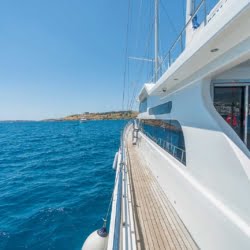 You can relax on your charter yacht with its features such as on-deck relaxation and outdoor dining areas and admire your fascinating Mediterranean cruise. If you want to relax on the flybridge, enjoy the wind, witness the natural wonders and turquoise waters, see different ecosystems in different bays, sunbathe on the bow or make the most of the water toys on the boat. There is something for everyone!