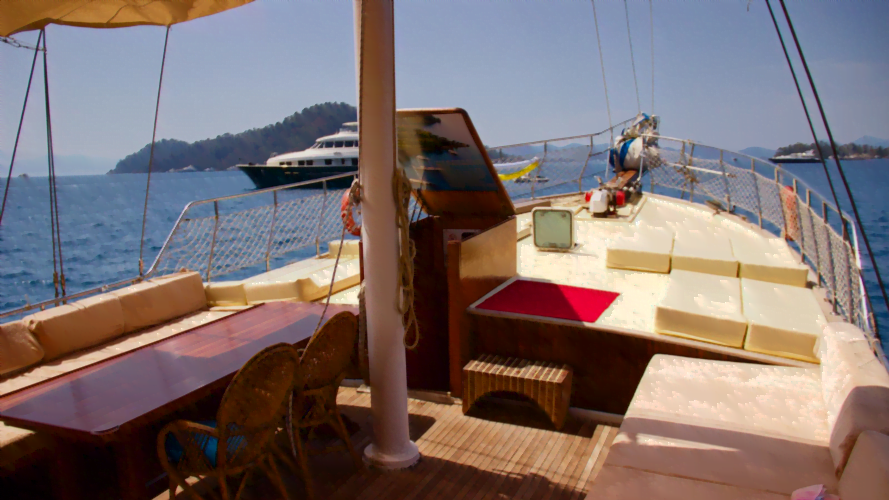 Eylül Deniz Gulet was refurbished for all needs. With its large spaces and bright, modern interior decoration, it has everything you need for a peaceful and wonderful rental holiday.