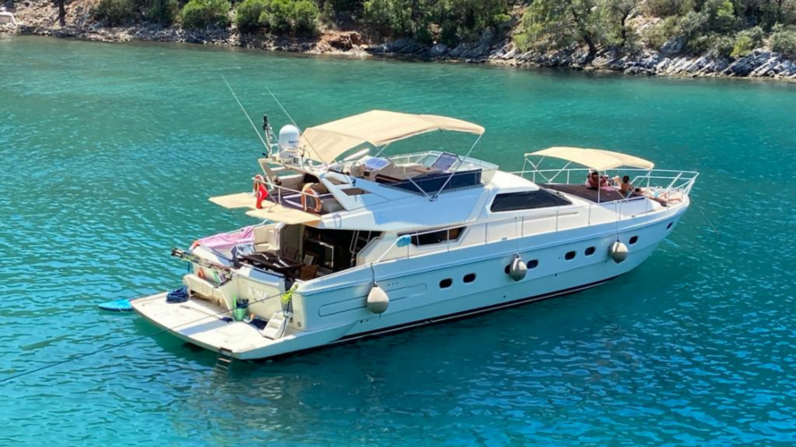 Ferretti 60 is a 3+1 cabin (one cabin is for crew) luxury motor yacht that can accommodate up to 6 guests for amazing yacht charters around the Eastern Mediterranean around, specializing in Göcek.