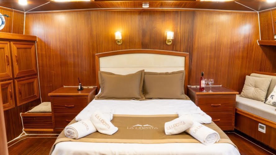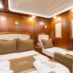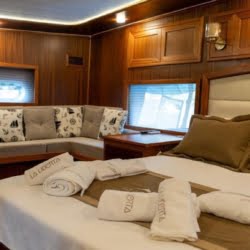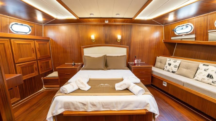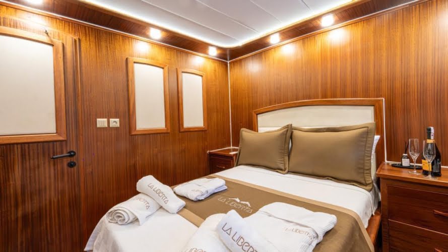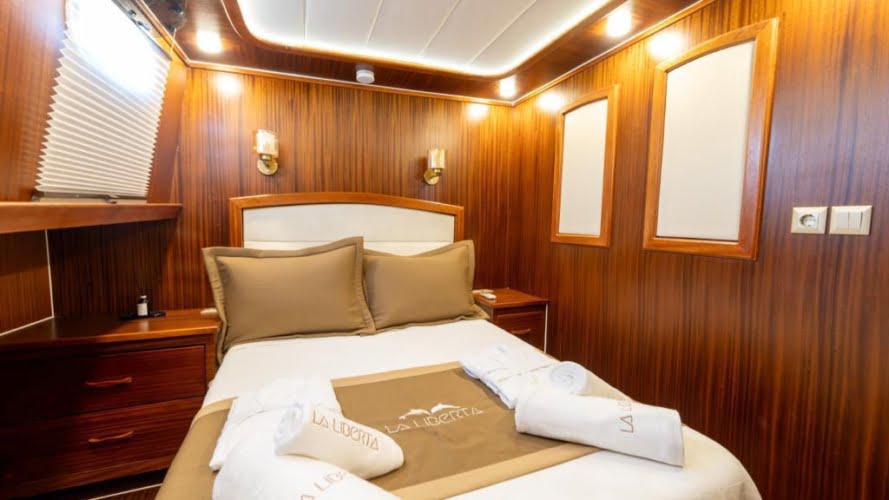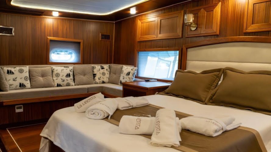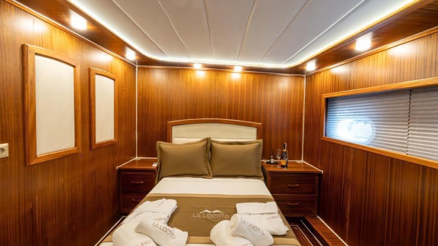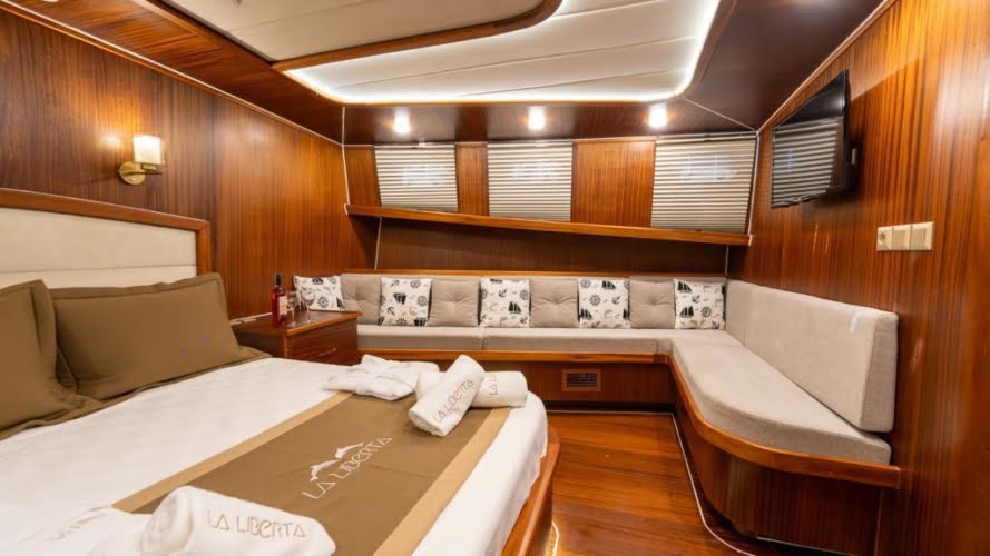 La Liberta Gulet: Luxury private yacht charter 6 Cabins, 12 Pax Private Yacht Charter Marmaris Turkey; is designed for two families, offering a showcase of entertainment and comfort. This magnificent gulet ensures a holiday where guests can truly indulge.