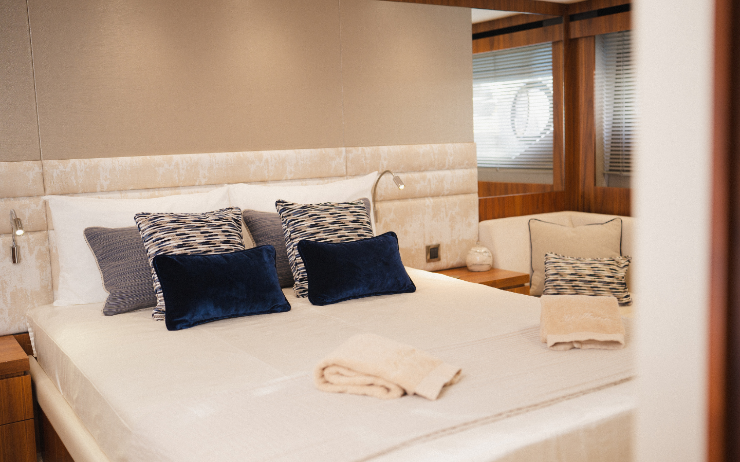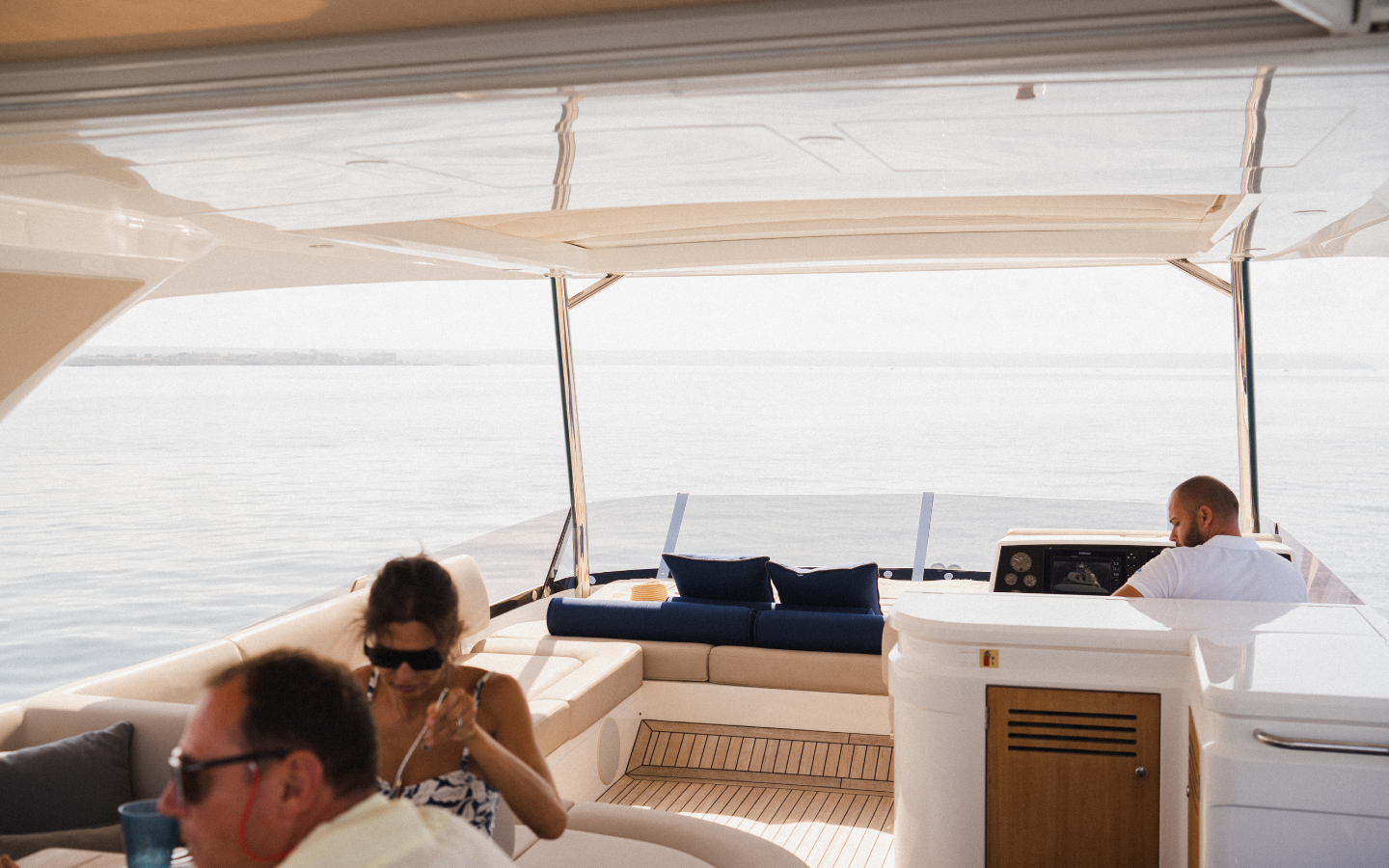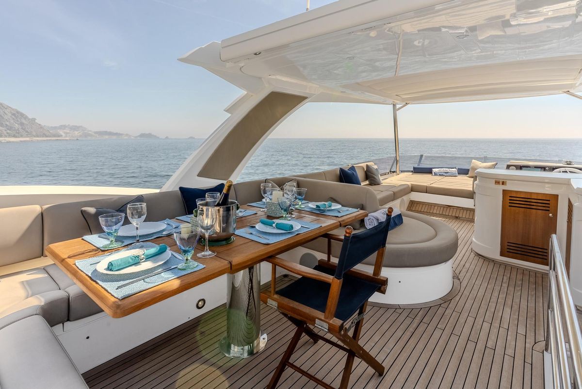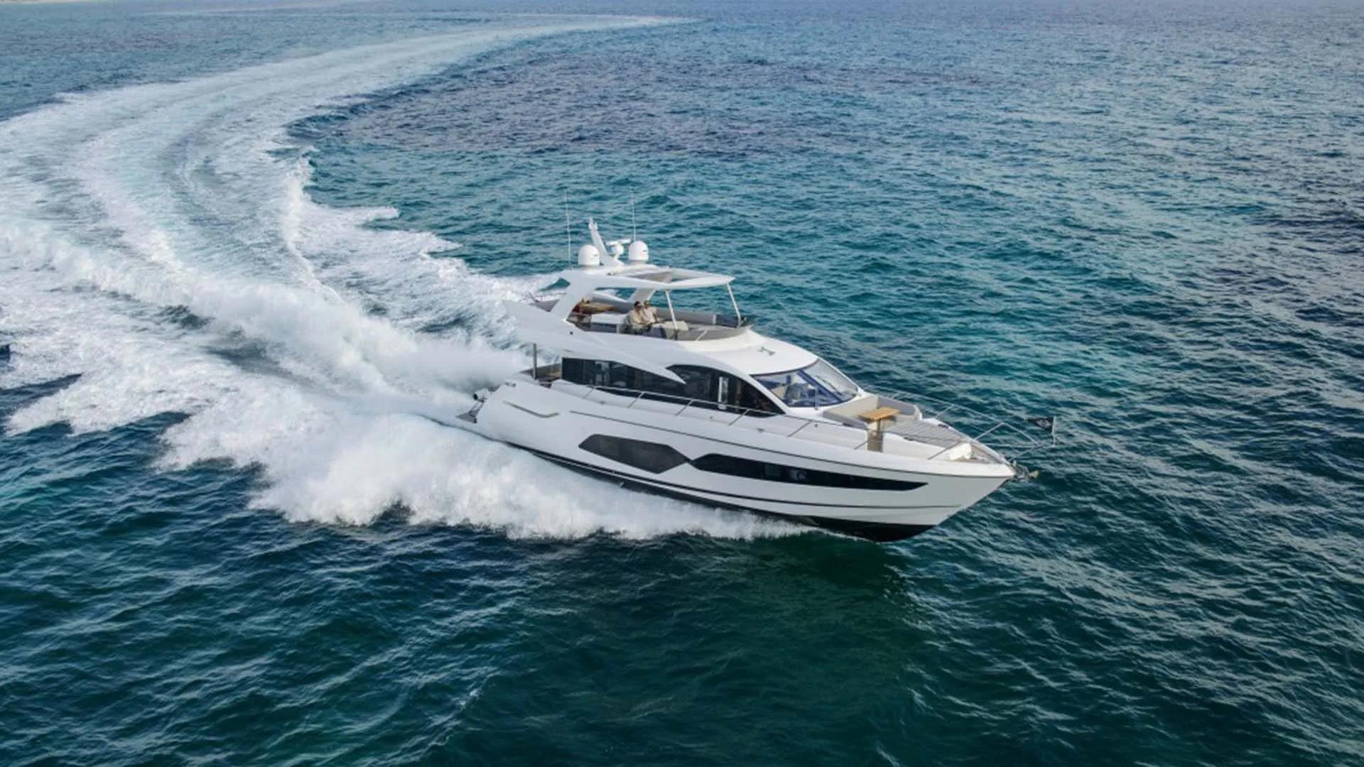 The Sunseeker Manhattan 66 “La Nonno” is a luxury motor yacht with flybridge, perfect for enjoying the sea with family or friends. It features 4 cabins (master, VIP, and 2 twin cabins) and 3 full bathrooms, comfortably accommodating up to 8 guests overnight and up to 12 guests for day charters.