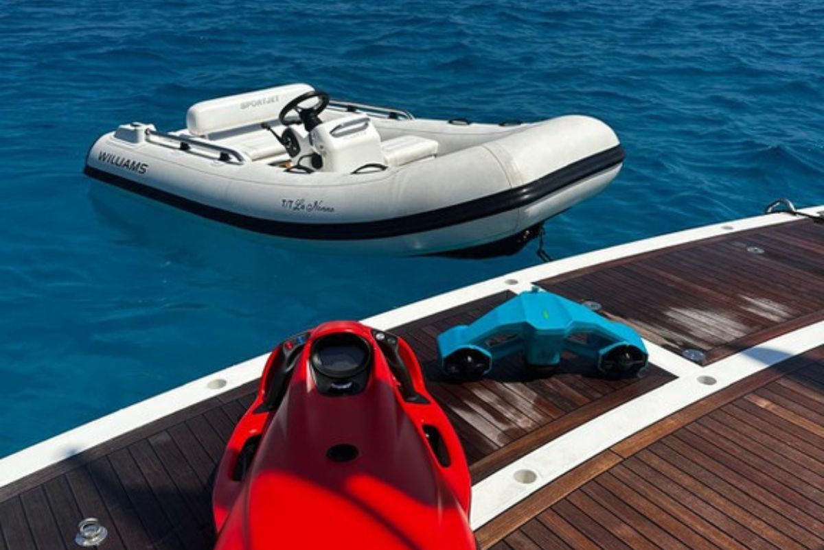The yacht is fully equipped with air conditioning, a fully fitted kitchen, an interior salon with TV and sound system, as well as a spacious flybridge with sunbathing area, wet bar, and outdoor dining space. The swim platform provides easy access to the sea and the tender. Safety is ensured with professional navigation and safety equipment, and the yacht is always chartered with a professional skipper included.