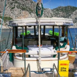 - Water equipment and toys – Water Ski, Wakeboard, Ringo, Canoe, Snorkelling Equipments, Fishing Equipments, Sun mattresses, Sun sail for shade in front of the gulet, Deck shower.