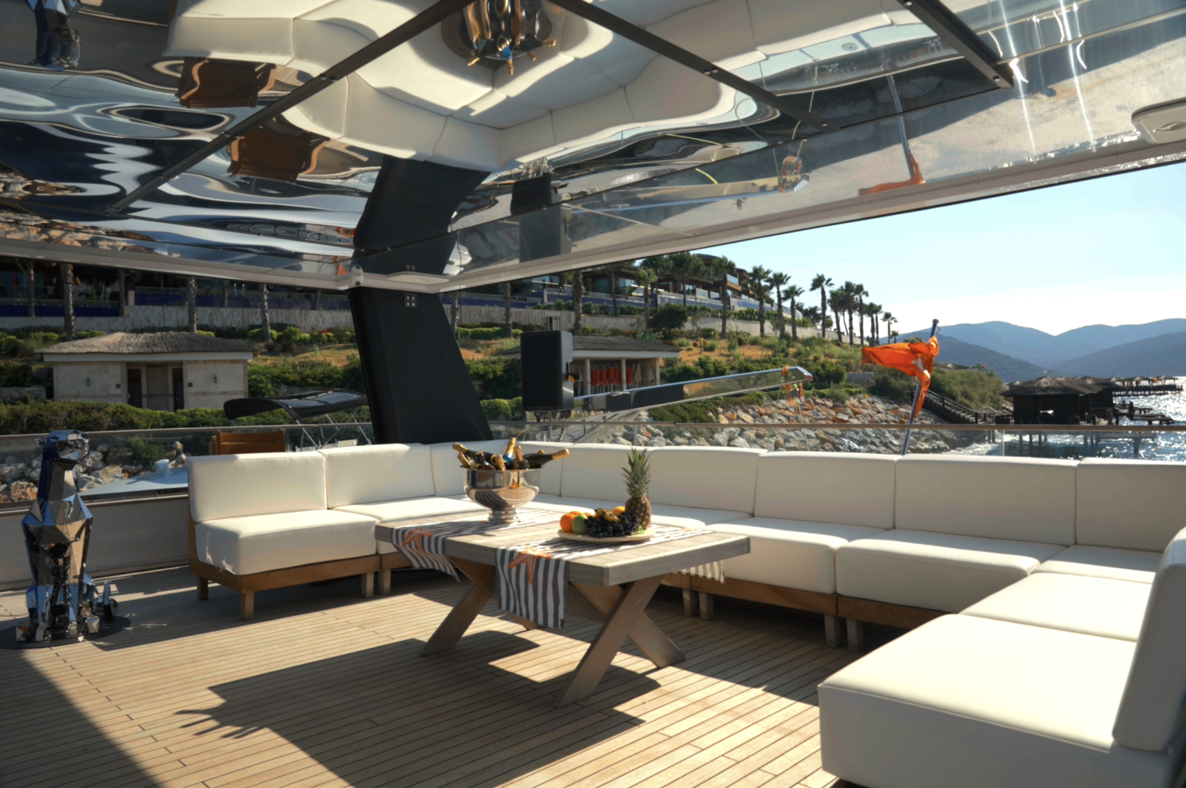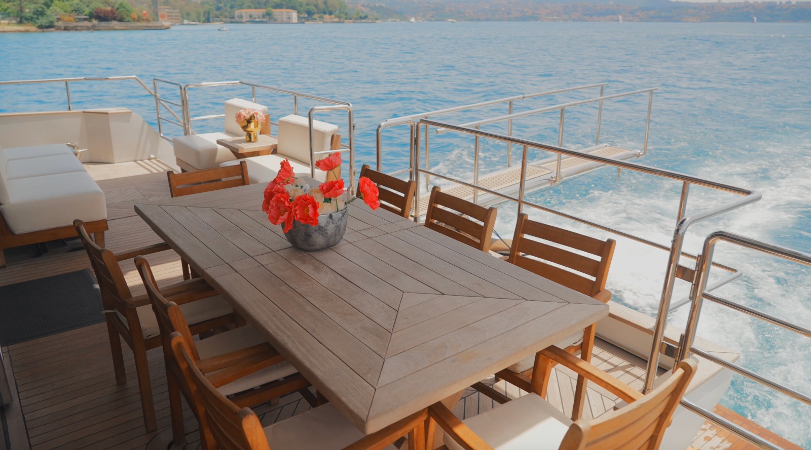 For those seeking a Daily Rental in the summer, M/Y Brise transforms into a private beach club in Bodrum. Imagine anchoring in crystal-clear bays, utilizing the on-deck Jacuzzi, and enjoying a sunset cocktail service prepared by the onboard chef. In the winter months, she graces the Bosphorus, offering a warm, glass-enclosed viewing platform for stunning Istanbul skyline tours.