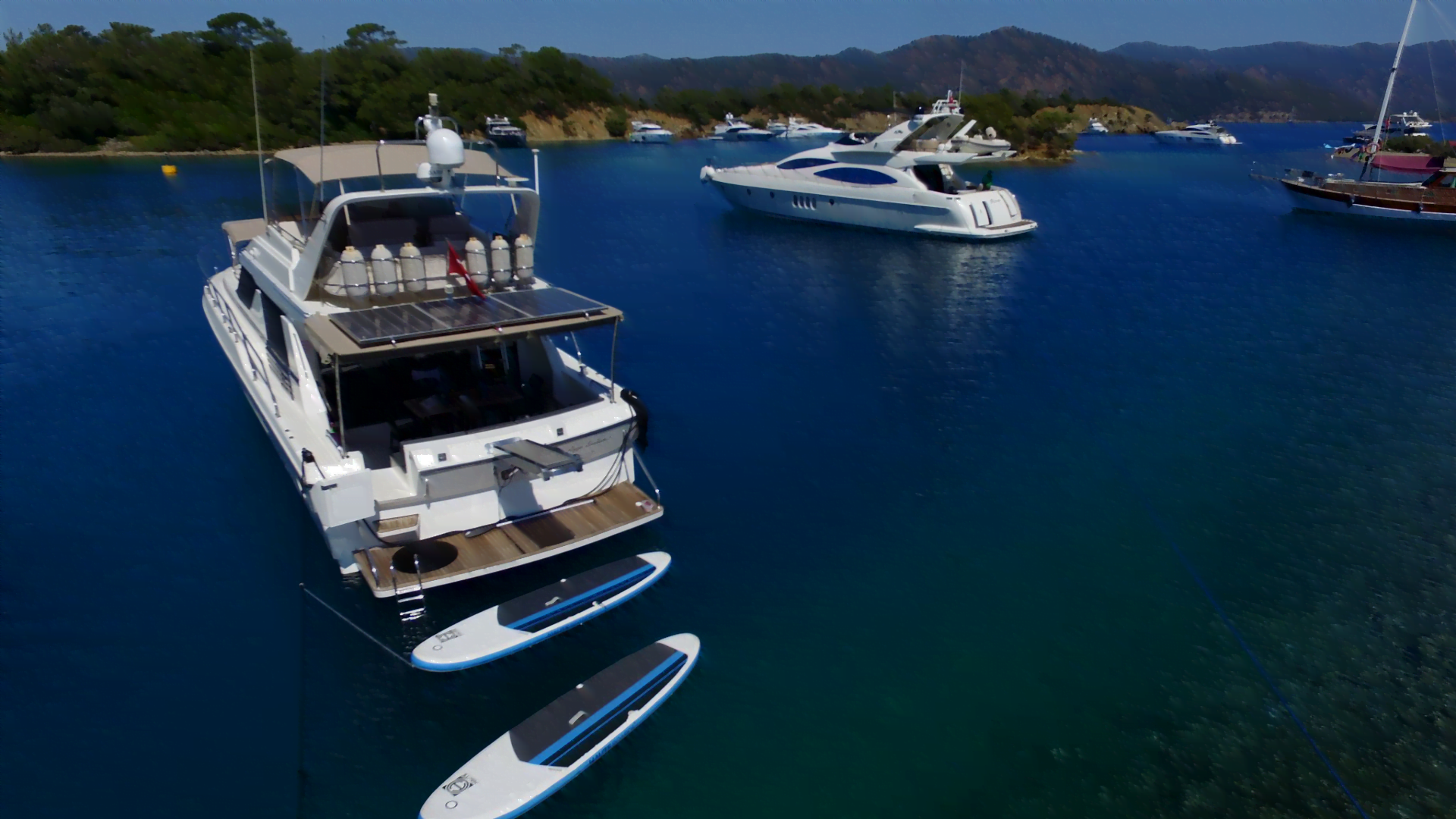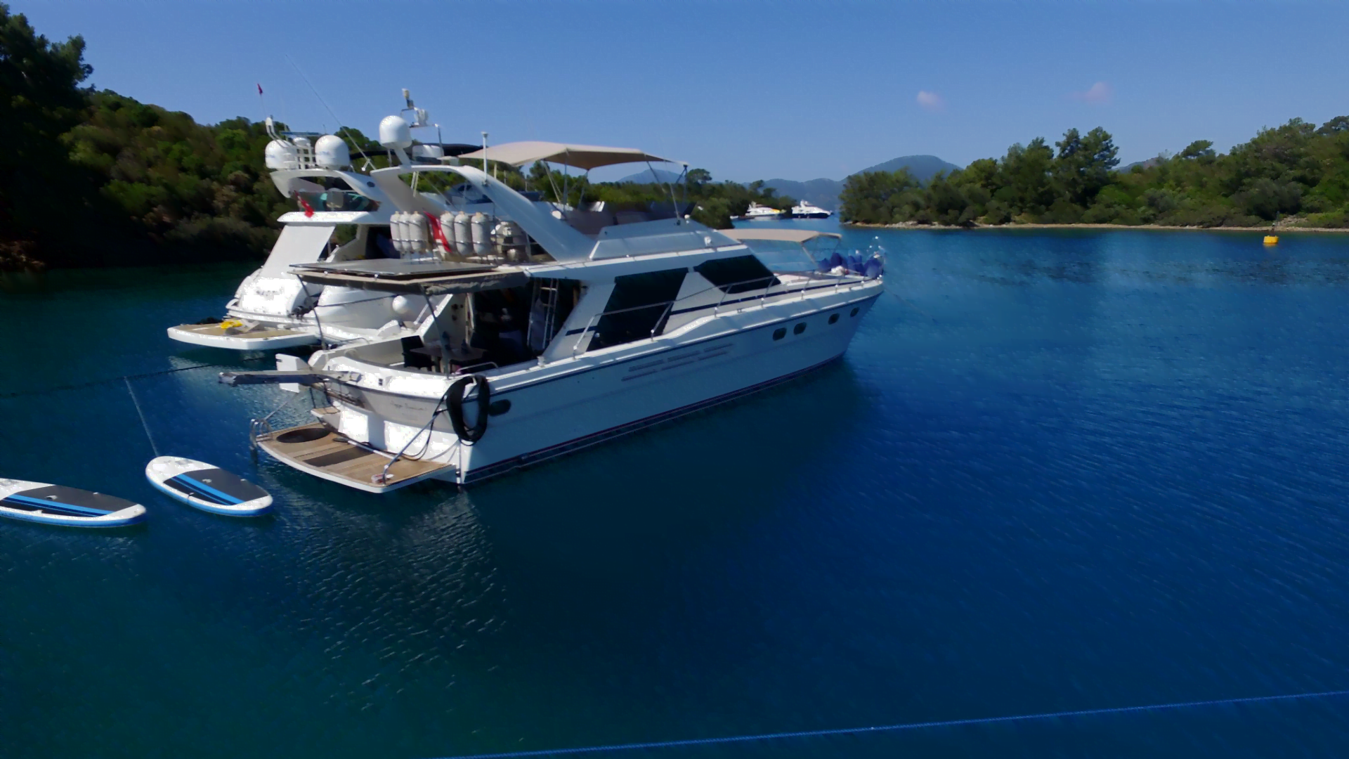 Princess 55 is a 3 cabin motor yacht that can accommodate up to 6 guests for amazing yacht charters around the Eastern Mediterranean around, specializing in Fethiye and Göcek. And also for one-day requests, Princess 55 can accept up to 10 guests.