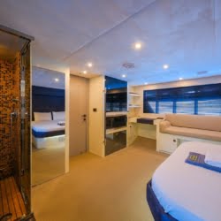 STA Marin is a 3-cabin luxury motor yacht that can accommodate up to 6 guests for amazing yacht charters around the Eastern Mediterranean, specializing in Fethiye, Gocek, and Marmaris.