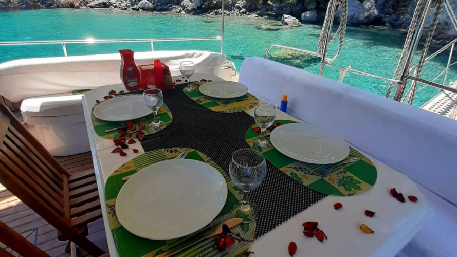 Tuana is a motor yacht that can accommodate up to 10-12 guests for amazing yacht charters around the Eastern Mediterranean around, specializing in Fethiye and Göcek. And also for one-day requests, DB1G can accept up to 4 guests.