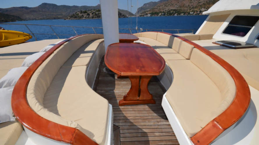Ufuk Ela Gulet has all you can need. With its cool spaces and bright, modern interior decoration, it has everything you need for a peaceful and wonderful rental holiday.