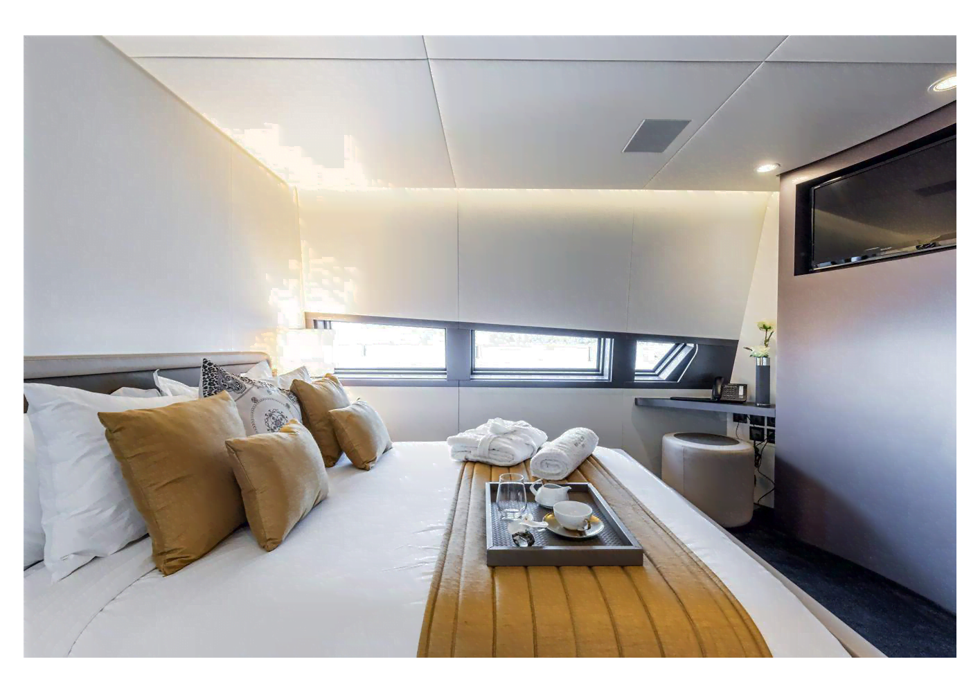 ROYAL FALCON ONE is a 5-cabin luxury power catamaran that can accommodate up to 10 guests for amazing yacht charters around Eastern Mediterranean Monaco.