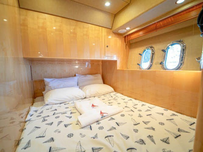Вы можете расслабиться на своей роскошной чартерной яхте с такими удобствами, как зона отдыха на палубе и обеденная зона на открытом воздухе, и полюбоваться увлекательным круизом по Средиземному морю. Если вы хотите расслабиться на флайбридже, насладиться ветром, стать свидетелем чудес природы и бирюзовых вод, познакомиться с различными экосистемами в разных бухтах, позагорать на носу лодки или насладиться водными игрушками на лодке, каждый найдет что-то для себя!