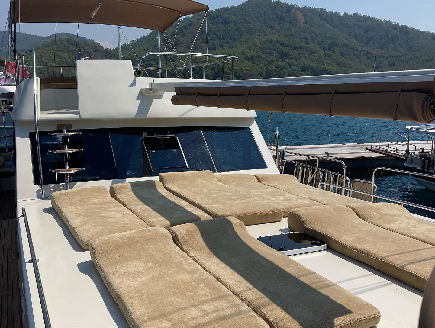 Güvertede dinlenme ve açık hava yemek alanları gibi özellikleriyle kiralık yatınızda dinlenebilir, büyüleyici Akdeniz yolculuğunuzun keyfini çıkarabilirsiniz. Flybridge'de dinlenmek, rüzgarın tadını çıkarmak, doğa harikalarına ve turkuaz sulara tanık olmak, farklı koylardaki farklı ekosistemleri görmek, pruvada güneşlenmek veya teknedeki su oyuncaklarından en iyi şekilde yararlanmak istiyorsanız. Herkes için bir şey var!